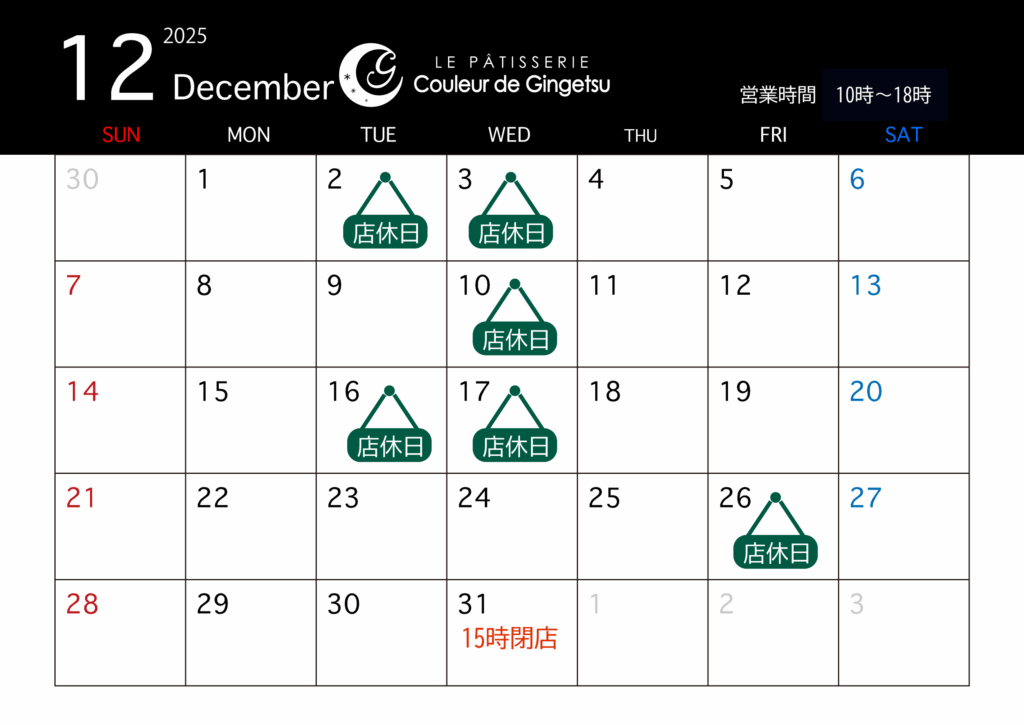 店舗営業時間 10:00-18:00(12月31日は10:00-15:00)